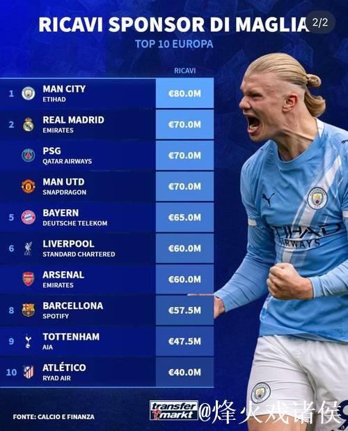 过去几年,欧洲足坛“金元时代”的格局愈发明显,不同豪门之间的财政实力差距,已经从转会市场延伸到了球衣上那一行赞助商的名字。最新一份来自欧洲体育商业机构的统计显示,传统豪门AC米兰新赛季通过赞助收入可达2026-02-02T07:50:15+08:00 -